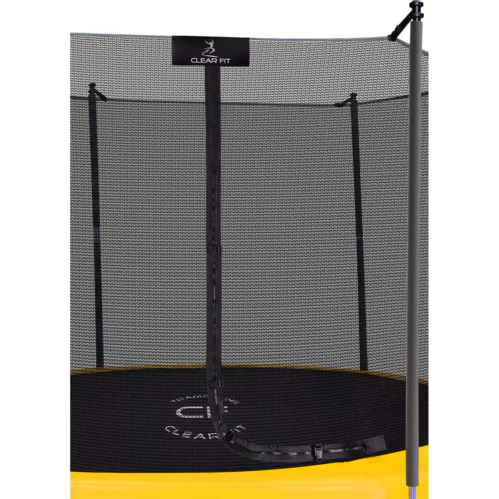 Защитная сеть — обязательный элемент батутов. Инновационное крепление расширяет рабочее пространство, исключает контакт с пружинами и выполнено из безопасных материалов, покрытых мягким матом. Сеть изготовлена из 100%-го полиэтилена, который отличается прочностью, эластичностью, низкой адгезией, морозостойкостью, амортизацией и устойчивостью к ультрафиолету. Диапазон рабочих температур — от -40°C до +80°C. Вход защищен усиленной молнией с дополнительными фиксаторами, что предотвращает случайное открывание. Металлические стойки покрыты мягким вспененным слоем EPE толщиной 9 мм.