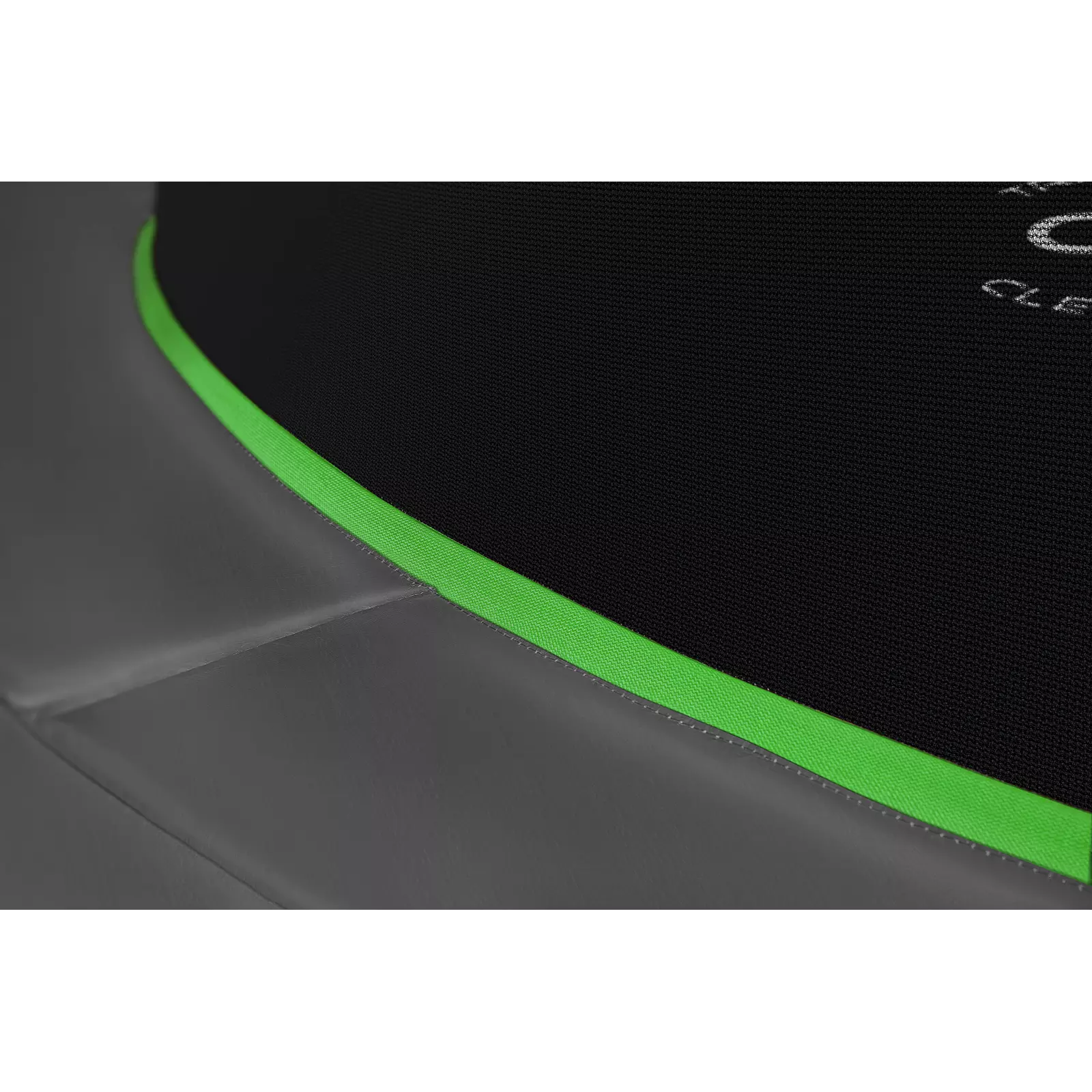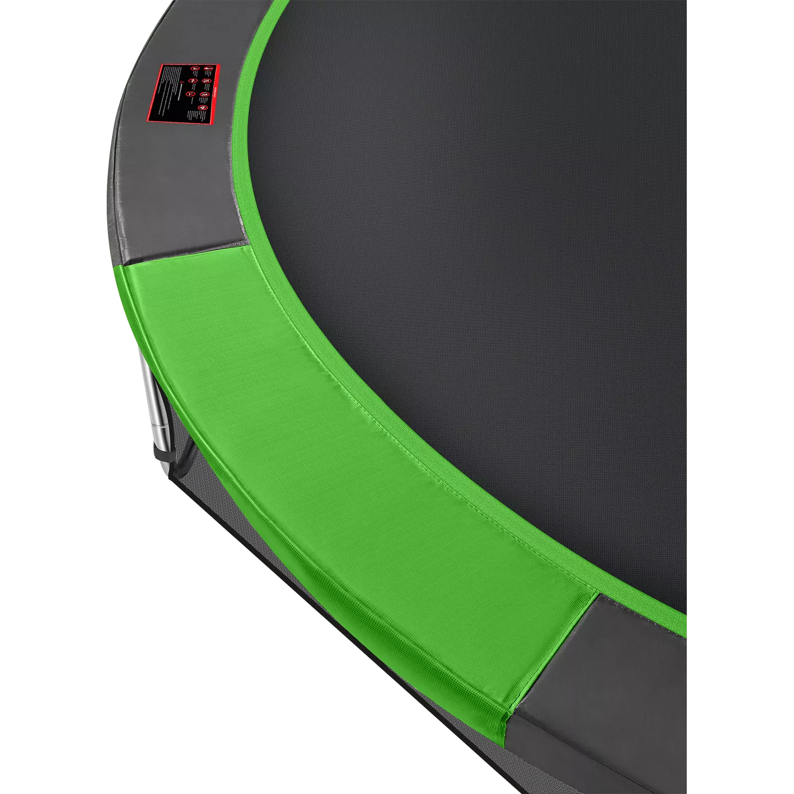 В 2026 году представлена обновленная линейка с улучшенной конструкцией каркаса. Усиление достигнуто за счет использования прочных Т-образных кронштейнов из металла толщиной 1.9 мм. Кроме того, в комплектацию добавлен карман для обуви. Каркасный батут с защитной сеткой Clear Fit серии GreenHop — отличаются комфортом и надежностью. Надежная рама из качественных комплектующих, прочная защитная сеть снабжена прямым креплением к прыжковому полотну и дополнительной защитой входа, наверху каркасное жесткое крепление, сеть не провисает и не слетает во время тренировок. Увлекательный, полезный и безопасный тренажер для всей семьи. Батуты серии GreenHop 10Ft, 12Ft, 14Ft и 16Ft поставляются в оптимальной для комфорта и безопасности комплектации: батут, верхняя защитная сеть, защитный мат, лестница и карман для обуви. Батут размером в 12 футов с прыжковой поверхностью 3.21 м идеально подходит для пользователей любого возраста, размеры полотна позволяют комфортно тренироваться взрослым и развлекаться детям, включая подростков. Верхняя защитная сеть оберегает от падений, усиленная молния и дополнительная защита входа уберегут малышей от случайного входа или падения. Надежный каркас из оцинкованной стали, качественные комплектующие и погодостойкие гальванизированные метизы рамы делает батут безопасным, устойчивым, надежным, гарантируют полную защиту от коррозии и долгий срок службы. Максимальный вес пользователя батута GreenHop 12Ft — до 200 кг.