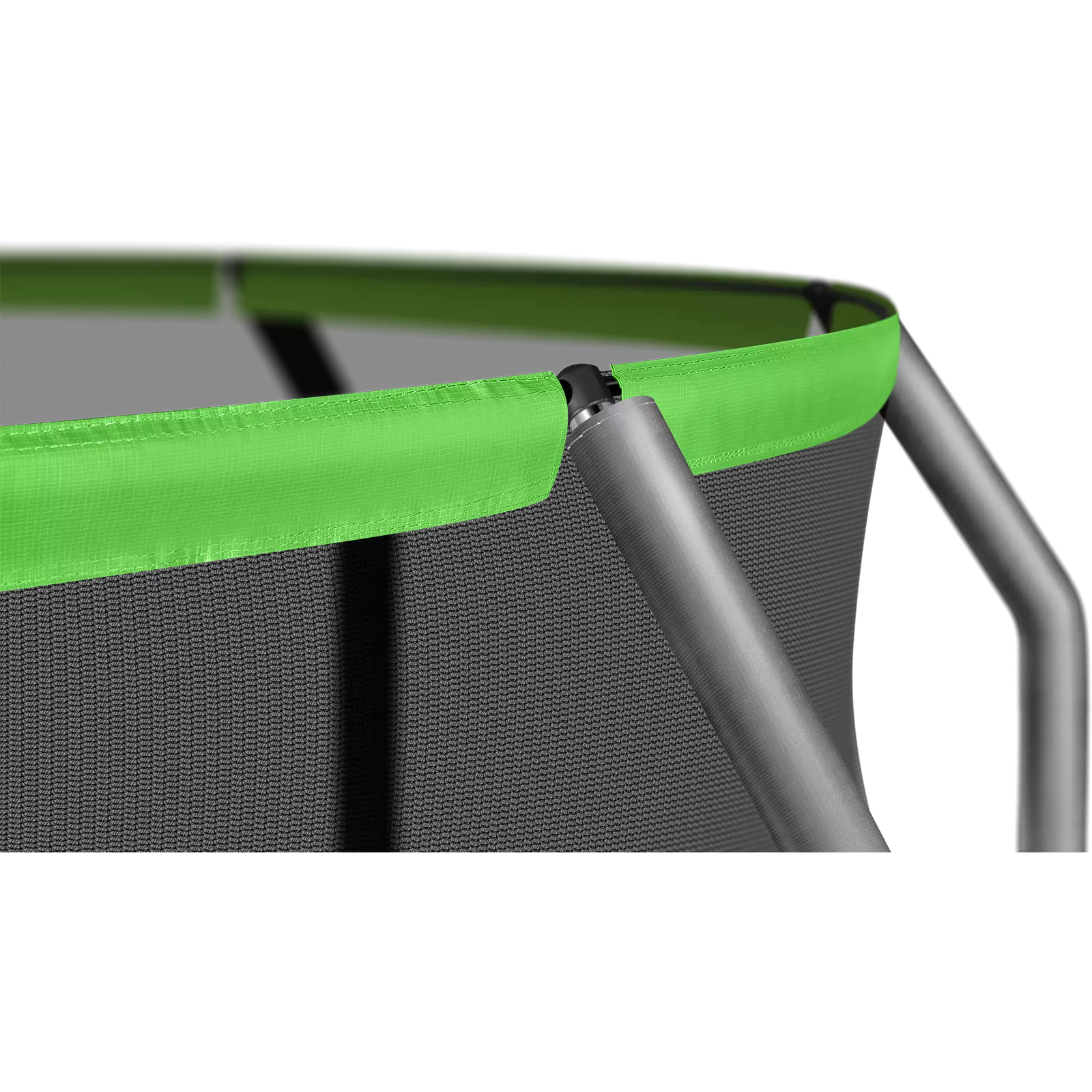 Защитная сеть входит в обязательную комплектацию батутов. Инновационное крепление увеличивает рабочее пространство батута, исключает соприкосновение с пружинным механизмом, все элементы крепления закрыты мягким матом или выполнены из безопасных материалов. Каркасное крепление обеспечивает надежную фиксацию защитной сети и придает привлекательный внешний вид. Материал защитной сети - 100% Polyethylene, основные свойства — это прочность, эластичность, низкая адгезия, морозостойкость, амортизация (нечувствителен к ударам), рабочая температура —40 C°...80 C°, устойчив к ультрафиолету. Вход на усиленной молнии, оборудован дополнительными фиксаторами (карабинами), защищен от случайного открывания. На металлические стойки надеты влагозащитные чехлы, внутри мягкий вспененный слой 9 мм.